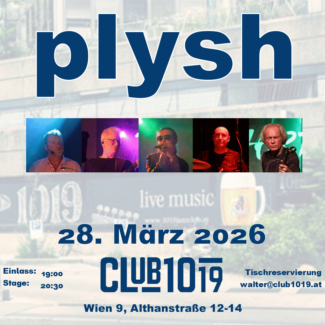 Im Laufe der letzten Jahre kristallisiert sich die fantastische heutige Besetzung von plysh heraus mit Magda Ofner (Lead Vocals), Martin Hilger (Guitar), Robert Hilger (Bass), Gerry Ritter (Keyboards) und Niki Hofbauer (Drums). Die Band überzeugt mit wunderbar gesungenen, groovigen und tanzbaren Covers aus den 80ern und 90ern und reißt das Publikum einfach mit.